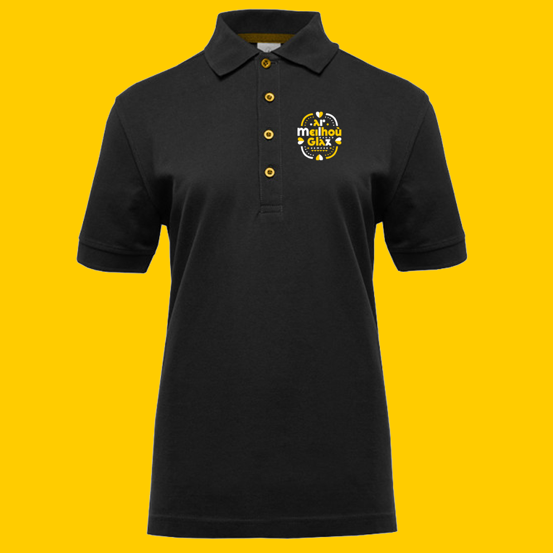 Bande de propreté contrastée au col. Bord côte aux manches et col. Plaquette 4 boutons. Boutons contrastés. Lavable à 60°. Tailles disponibles : De S à XXL
