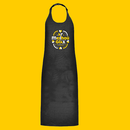 Tablier sans poche, hauteur 90cm, largeur 75cm. Boucle plastique pour ajuster l'anse supérieure. Lavage 60°(étiquette 30° erronée).